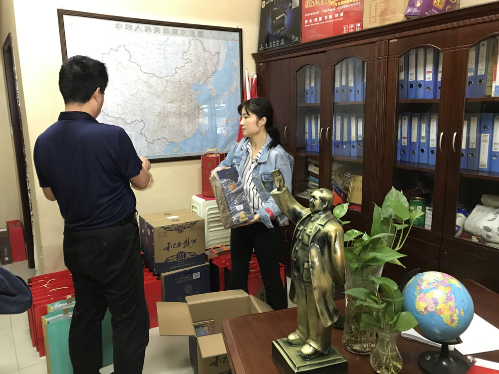 2020年9月26日,国庆节与中秋节即将来临之际,公司领导于总经理和李副总亲自为公司保障有力的行政工作人员与辛苦在一线拼搏的业务人员挑选节日慰问品。并积极安排,亲手发放到每位同仁的手里。鼓励大家再接再厉敢于业务上争抢先锋!后勤保障上稳如磐石!